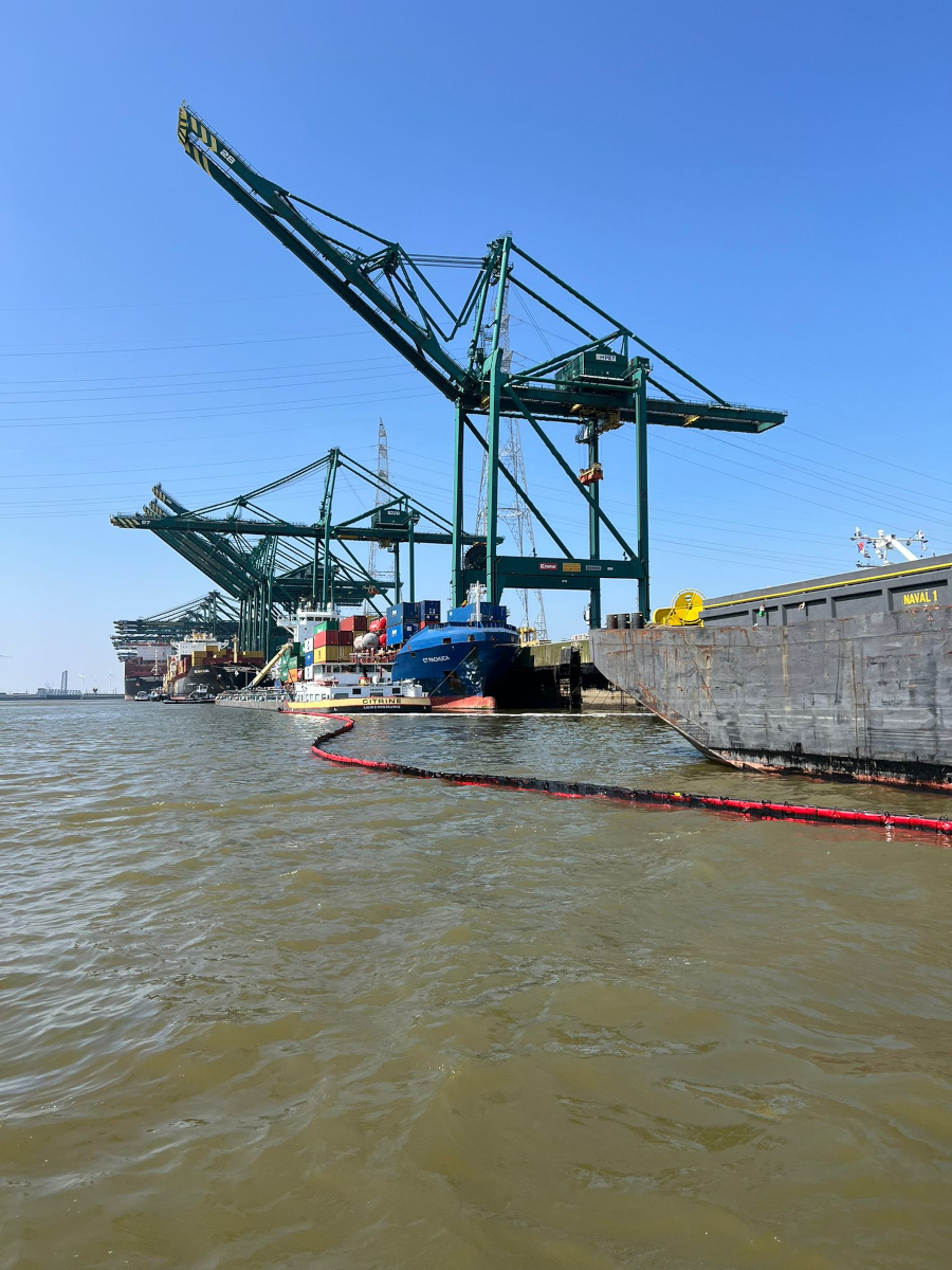 Tebezo heeft in samenwerking met MRD Marinesupport B.V. Sweeping Arms B.V. meer dan een week, 24 uur per dag bezig met het opruimen van zware stookolie in de Deurganckdok haven in Antwerpen. Met hogedruk stoomcleaners, oliebestrijdingsmiddelen en onze veegarm werd de olie verwijderd van zeeschepen, kademuren en het oppervlaktewater. Het getij maakte het werken niet gemakkelijker, de haven staat namelijk in rechtstreekse verbinding met de Schelde. Het reinigen gebeurde in nauwe samenwerking met de Antwerpse havendienst en 9 andere aanwezige partijen. De olie kwam vrij bij het bunkeren van een containerschip.