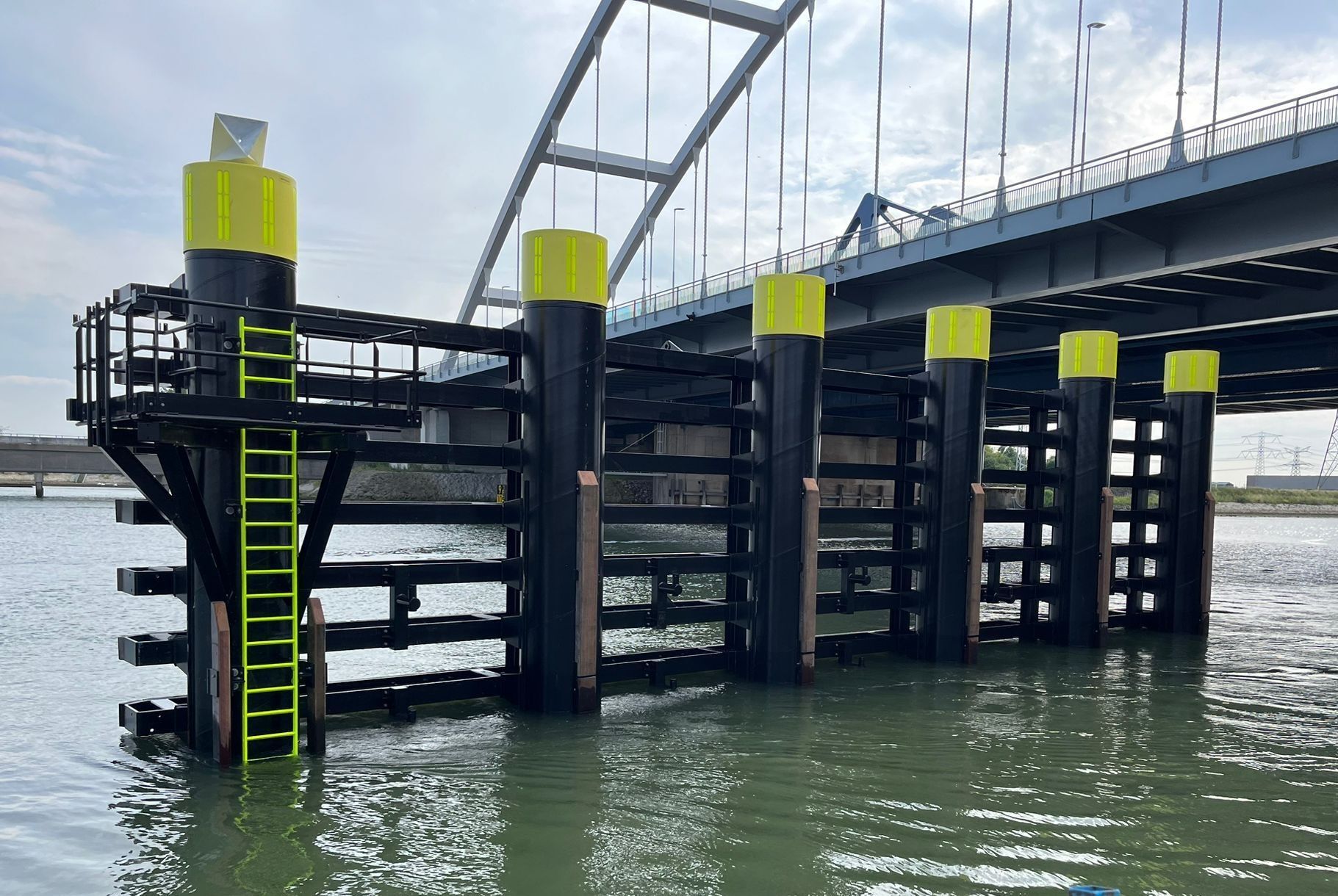 Het project omvatte het verwijderen van de instabiele dukdalf en het plaatsen van 6 buisconstructies met elk een afmeting van 30,5 meter en 10 fenderliggers die dienen als geleiderail voor de scheepvaart. Samen vormen de constructies een geleidewerk met een totale lengte van 24,5 meter. Door de sterke stroming en het getij was dit een uitdagende klus, maar ons ervaren team heeft het uitstekend uitgevoerd.