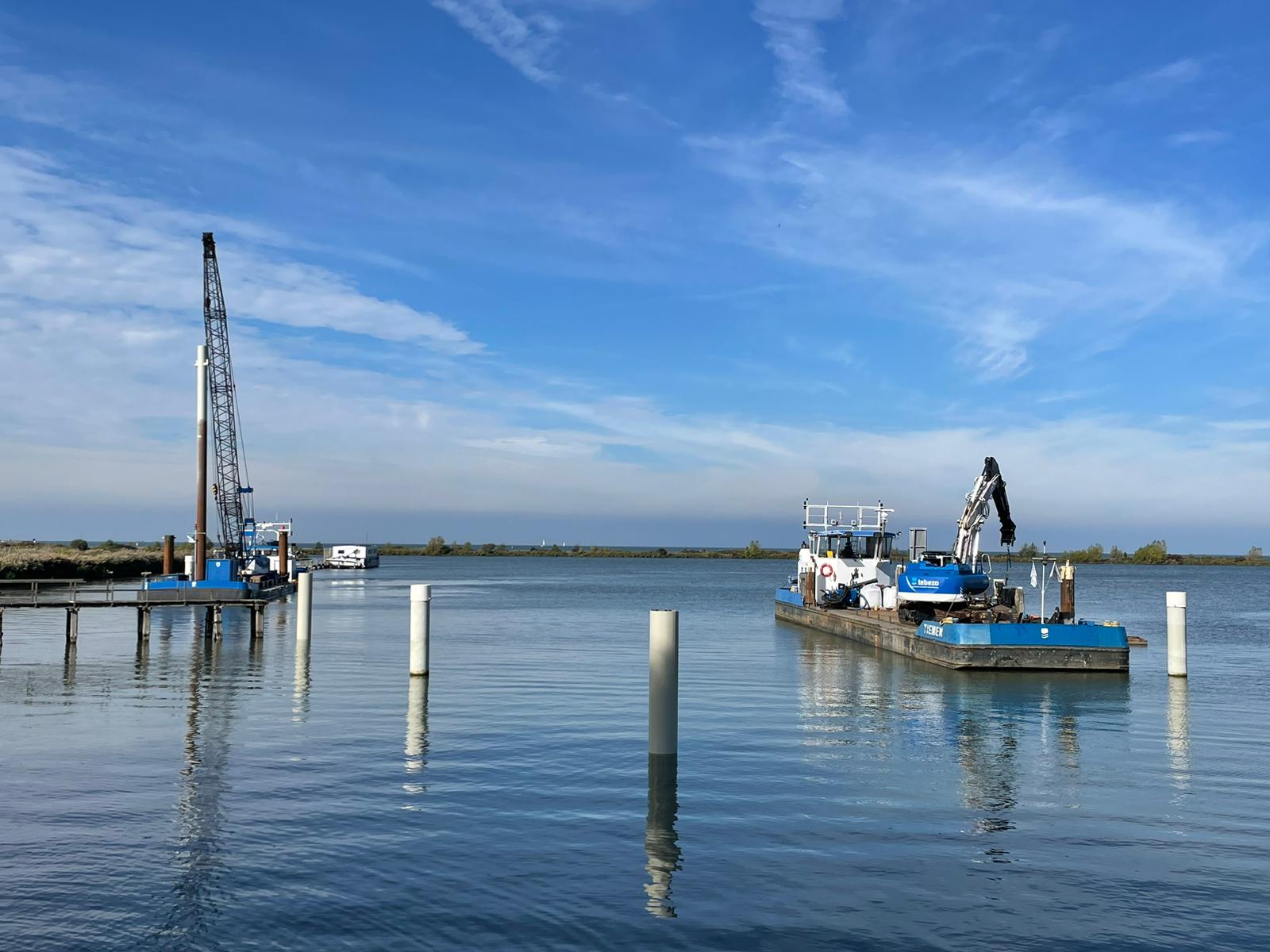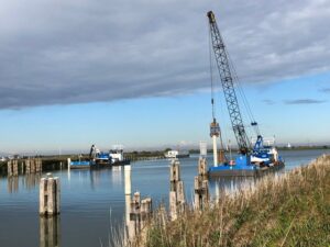 In de provincie Flevoland is Tebezo in opdracht van Croonwolter&dros en Hollandia (Triple B) gestart met het verwijderen van de oude houten remmingwerken. Gelijktijdig zijn we bezig met het aanbrengen van een nieuwe wachtsteiger en stalen afmeerpalen.