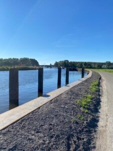 Langs de ringvaart van de Haarlemmermeerpolder bij de Kagerplassen heeft Tebezo voor het Hoogheemraadschap Rijnland 900 meter stalen damwand ter versterking aan de kade geplaatst. Ook hebben we tussen de spoorbrug en het viaduct van de A44, de gehele kade opnieuw geasfalteerd.