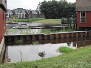 - Leveren en aanbrengen van houten damwanden, gordingen en drainage
