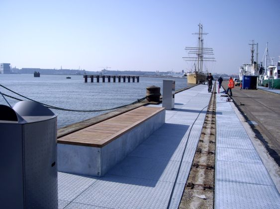 Voor onze opdrachtgever, gemeente Amsterdam, hebben wij de pier aan de Mt. Ondinaweg (Amsterdam-Noord) gesaneerd. De pier is vervolgens bekleed met thermisch verzinkte stalen tranenplaten.